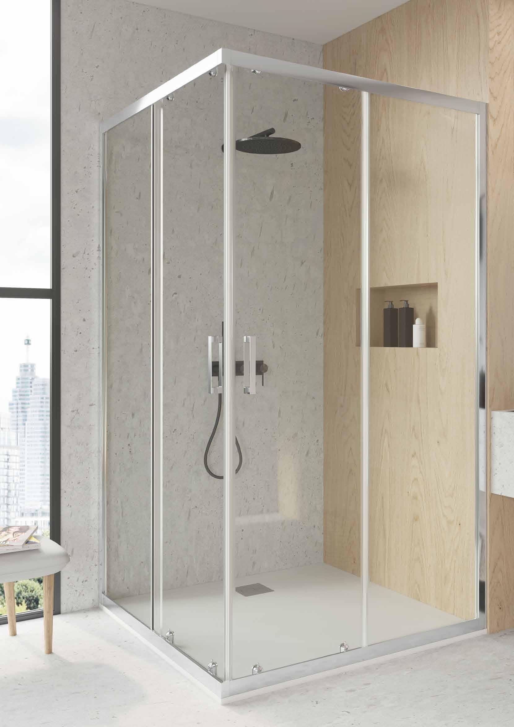 MAMPARA DE DUCHA ANGULAR CROMO F2 - ANTI-CAL 2 FIJOS + 2 CORREDERAS
