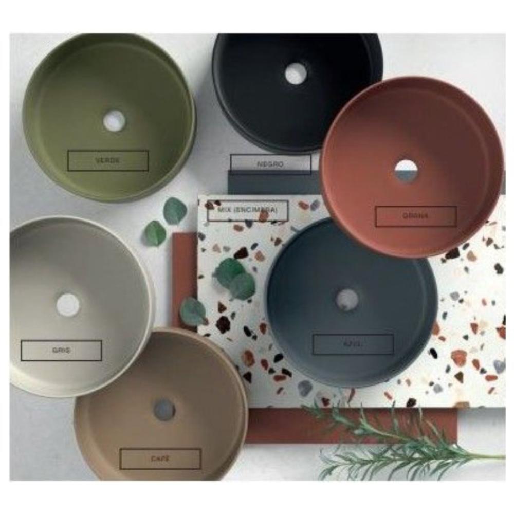 2 Lavabos porcelana fino sobre encimera redondos color K Verde. 46 x 33 x 13 cm