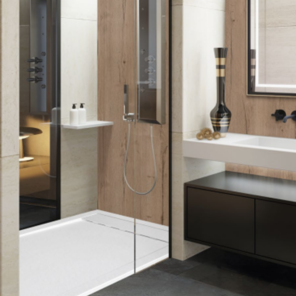 Platos de Ducha Blanco de Resina y Carga Mineral Modelo Premium Ambiente